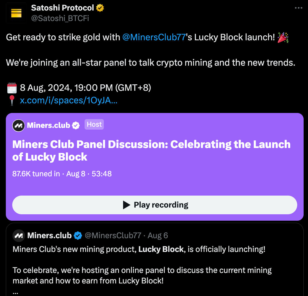 This event signifies Satoshi Protocol's continued engagement within the broader cryptocurrency ecosystem, particularly the mining sector.