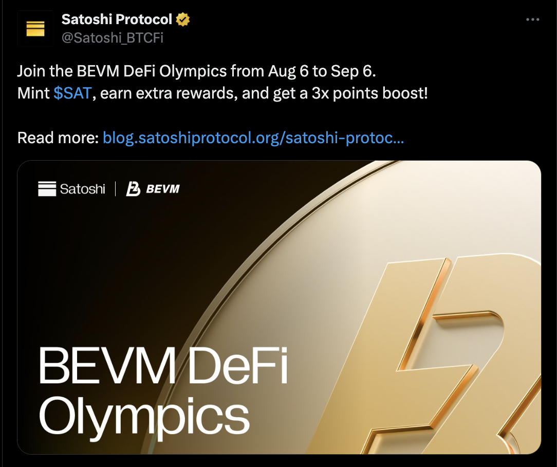 Read more: Satoshi Protocol Joins BEVM DeFi Olympics with Bonus Points Offer!