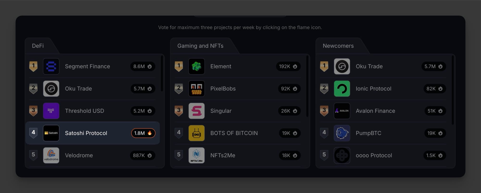 Remember to vote Satoshi Protocol on the BOB Ecosystem page, it will help us to allocate more spice to distribute to you 🫵