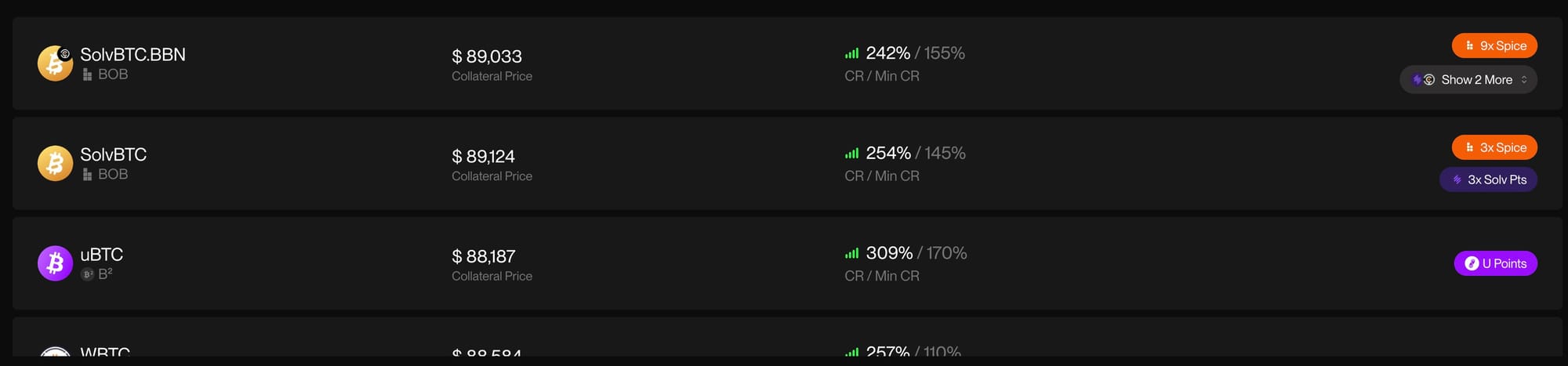 - Supported 10+ Wrapped BTC / LST collaterals, enabling minting of satUSD with wBTC, tBTC , SolvBTC, and more.