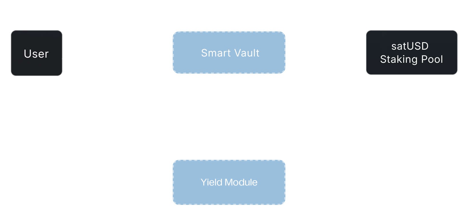 - Minted satUSD never leaves the system — it is staked into the satUSD Staking Pool, weighted by each asset’s staking factor.