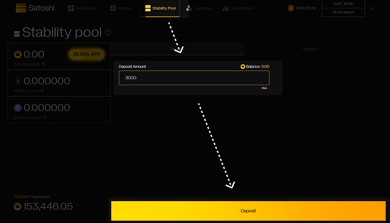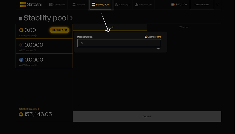 You can deposit SAT into the Stability Pool following these steps:
