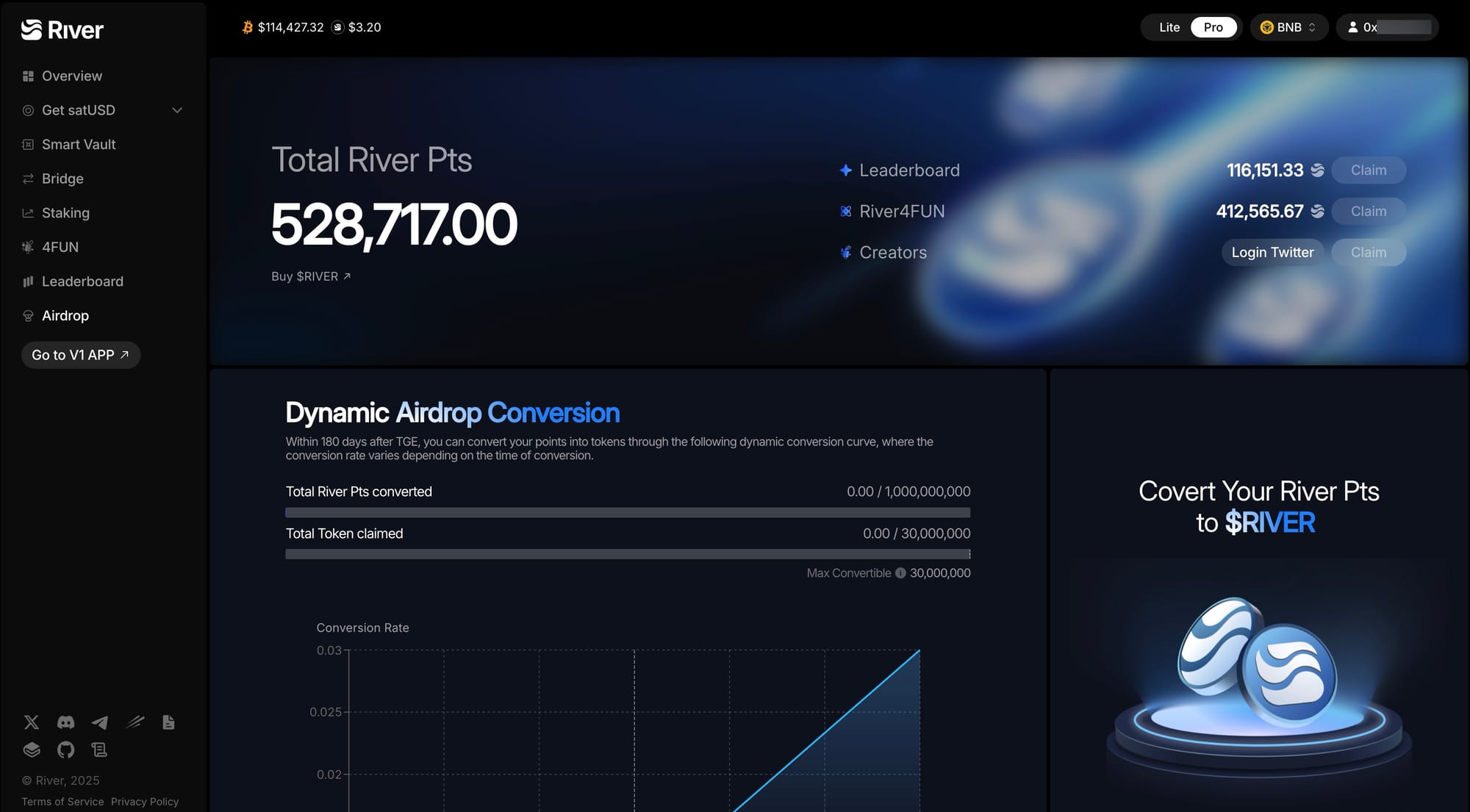- Convert you River Pts to $RIVER on BNB Chain