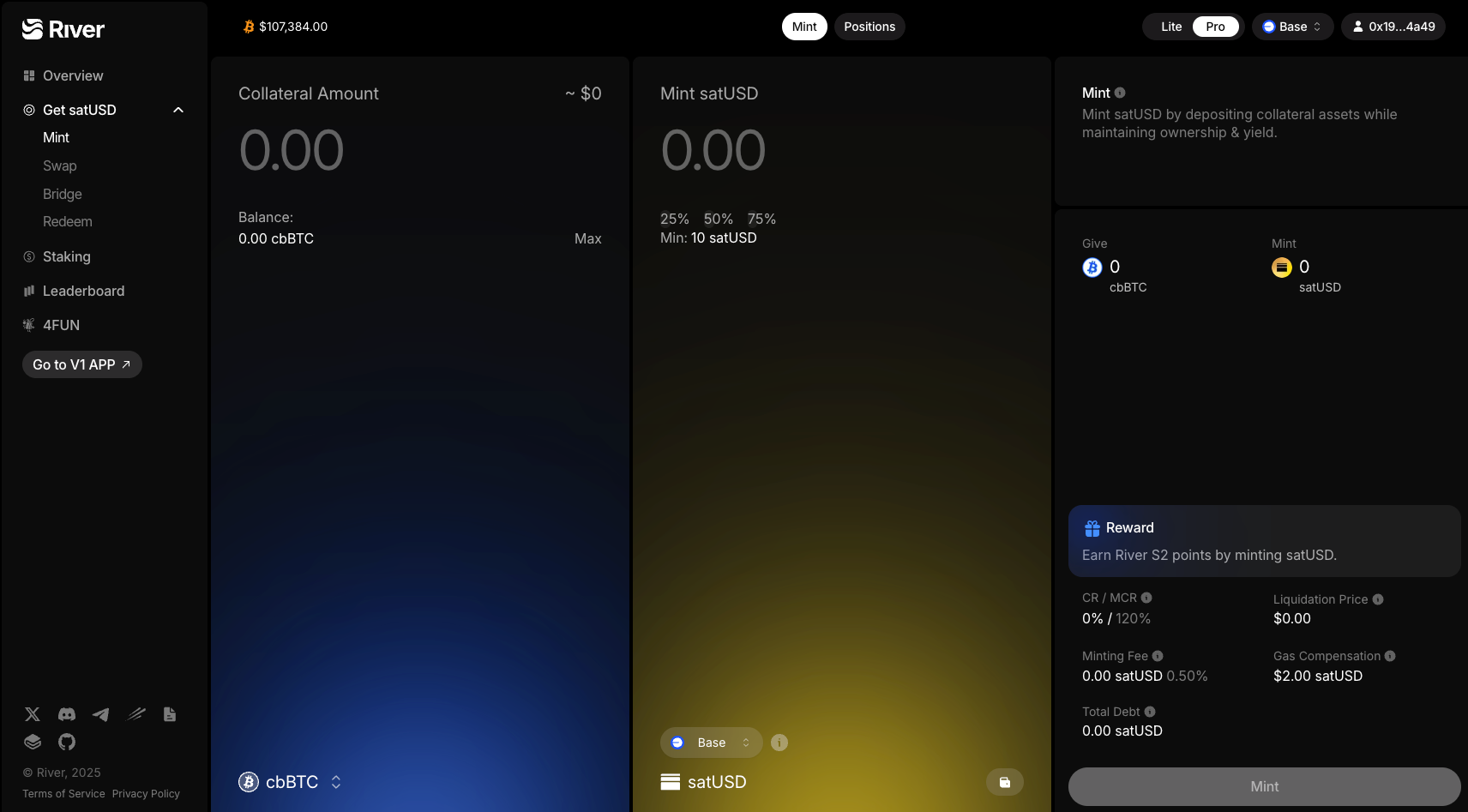 Users can now mint satUSD using top-tier collateral, provide liquidity on Base-native DEXs, and earn River Pts at a 50x multiplier.
