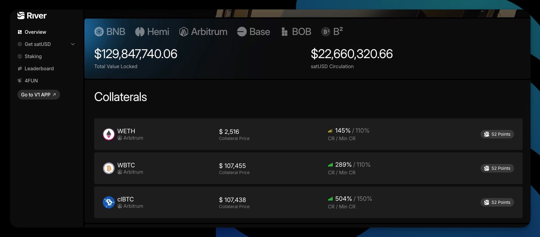 Arbitrum is one piece of River’s broader deployment strategy. satUSD is already live across Base, BNB Chain, and Hemi, with additional networks in progress.