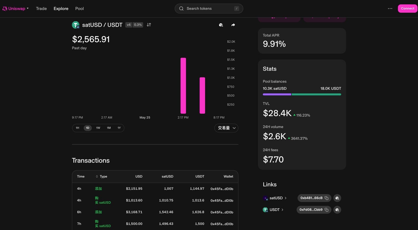 - Supply satUSD-USDT Liquidity on Uniswap v4 → https://app.uniswap.org/explore/pools/arbitrum/0x43e87ab961d603eb14ef39867f95e64b433703780b461985cac1a1b0f1de4f6b?lng=en-US