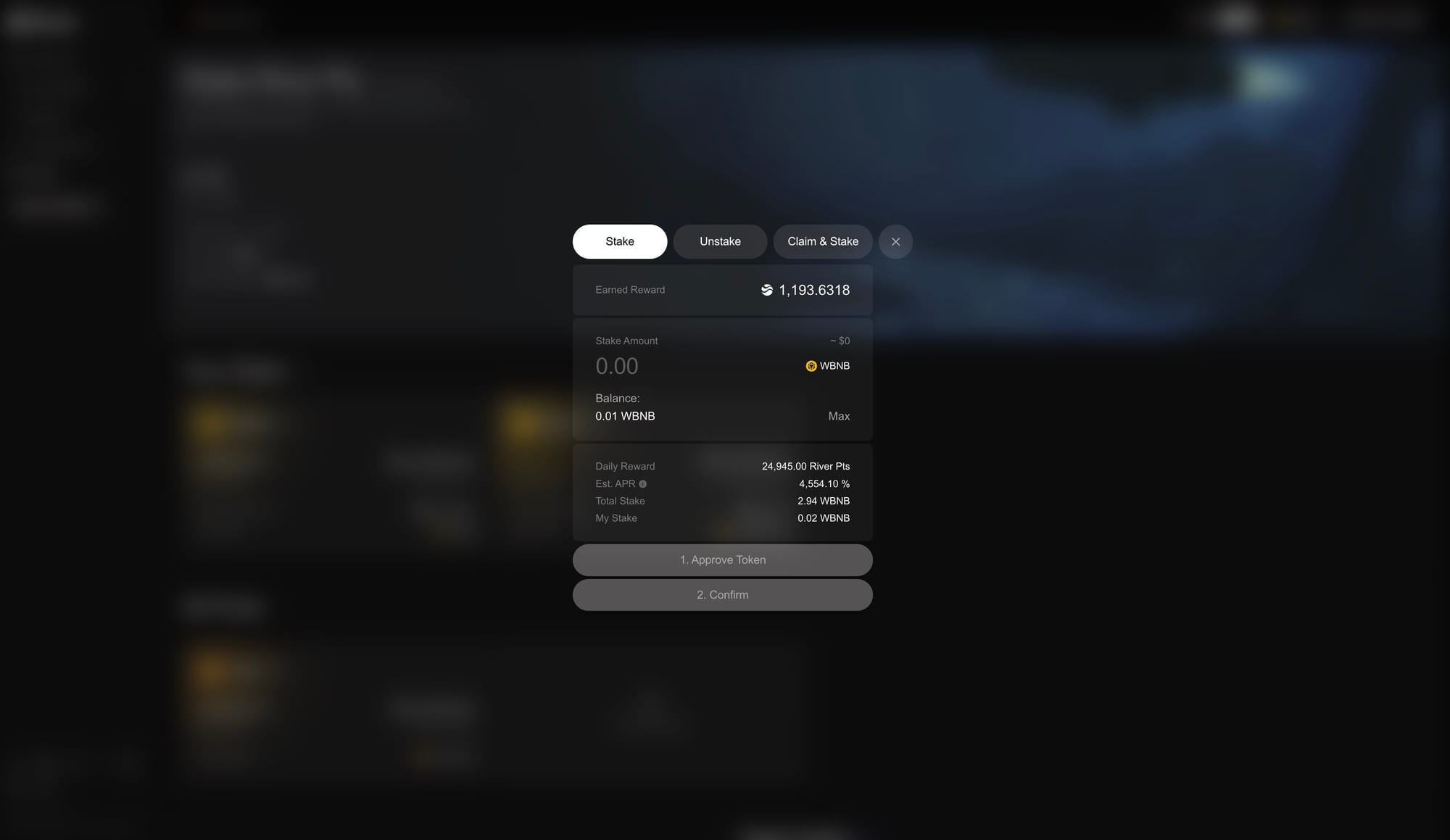 Claim and stake: Instantly reinvested in the River Pts Vault for higher APR, locks until TGE. These convert directly into $RIVER.