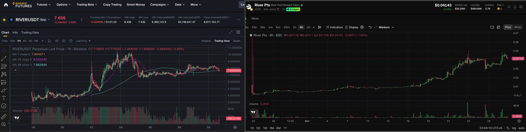 River Pts, the ecosystem points in ERC-20 format, have risen 50× since launch — reflecting growing market recognition of River’s Dynamic Airdrop Conversion, the first time-encoded tokenomics, and the arbitrage strategies between River Pts, $RIVER, and perpetual.
