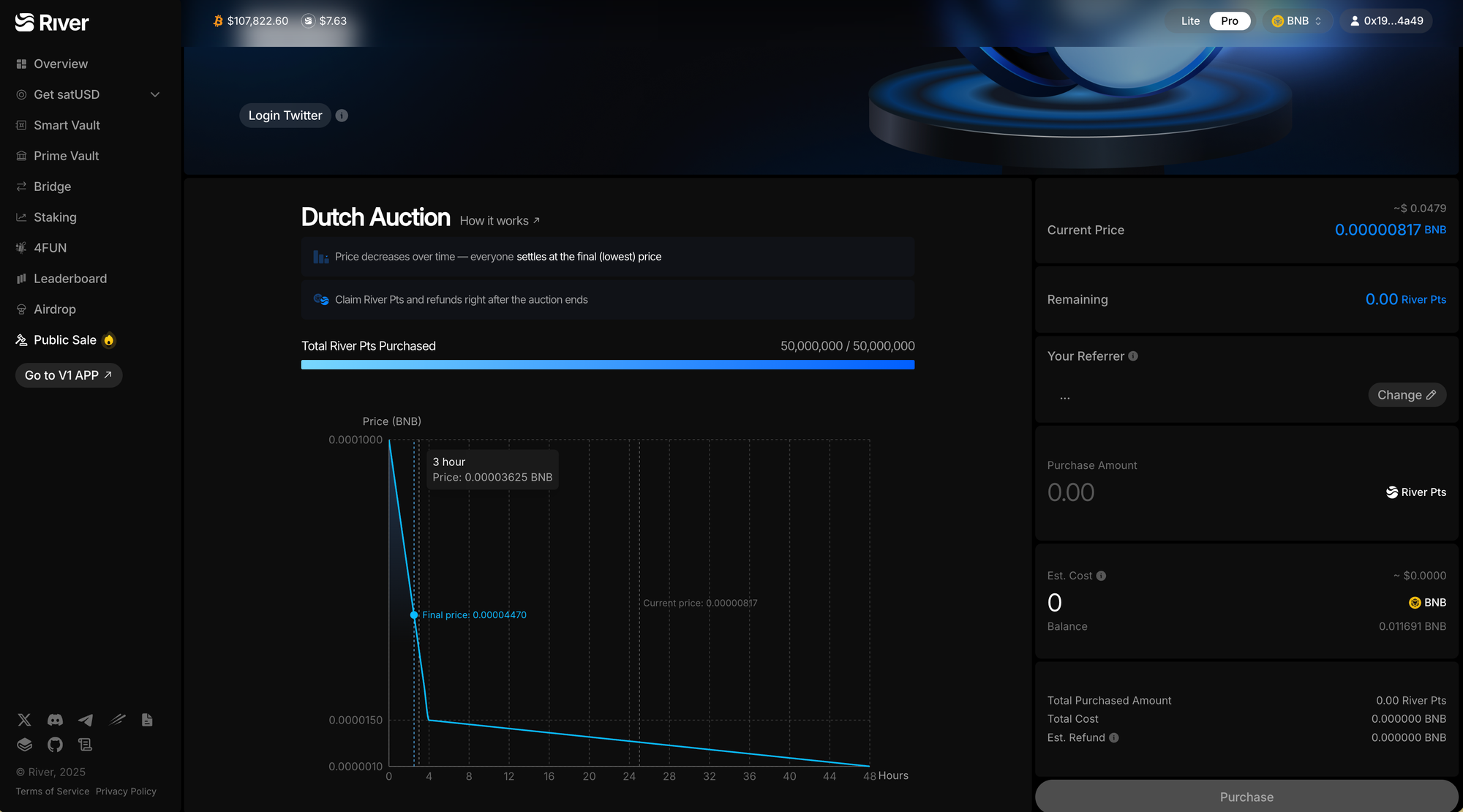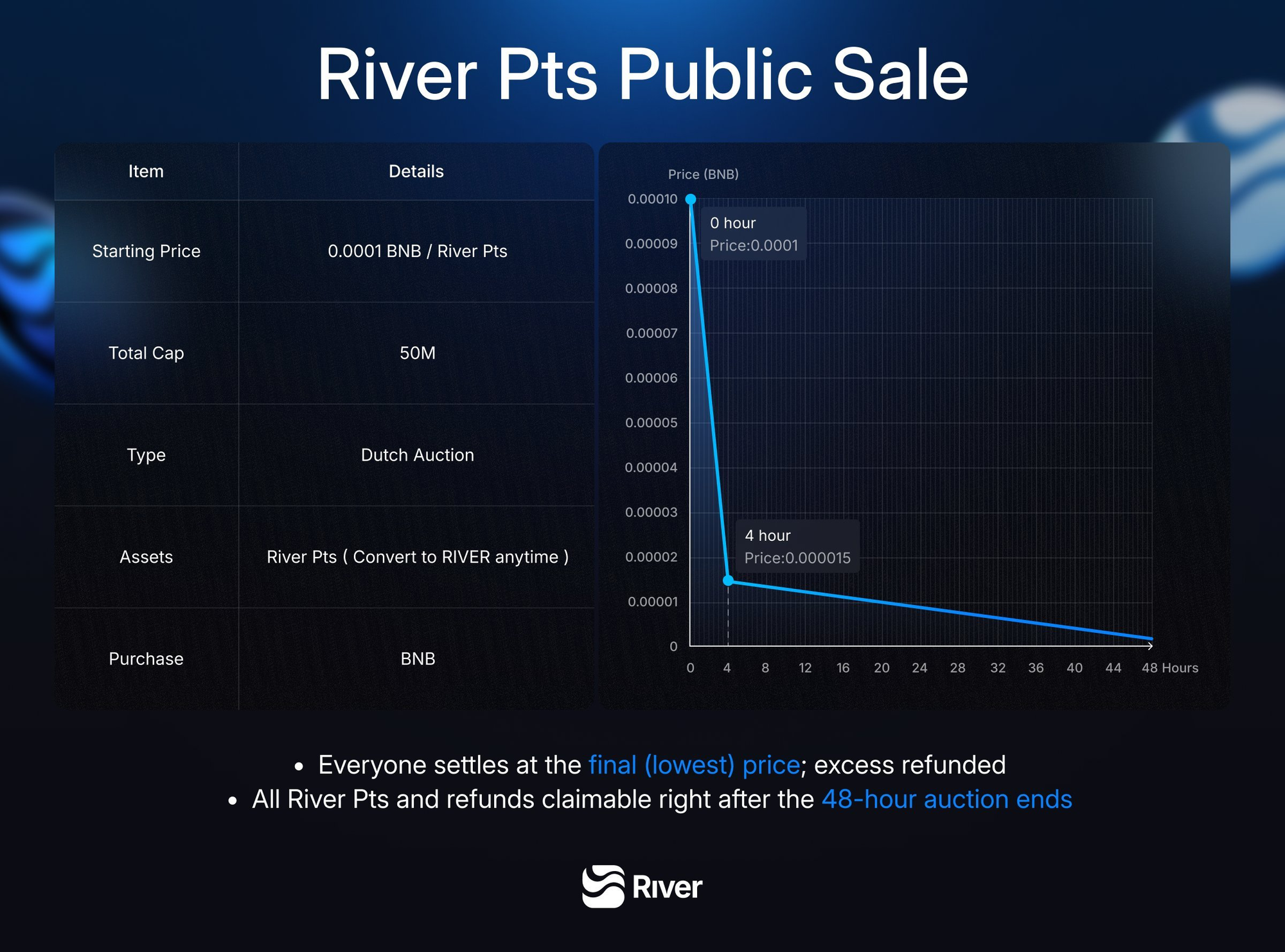 The River Pts Public Sale extended Dynamic Airdrop Conversion beyond time and behavior, allowing the market itself to define value through a 48-hour Dutch auction on BNB Chain.