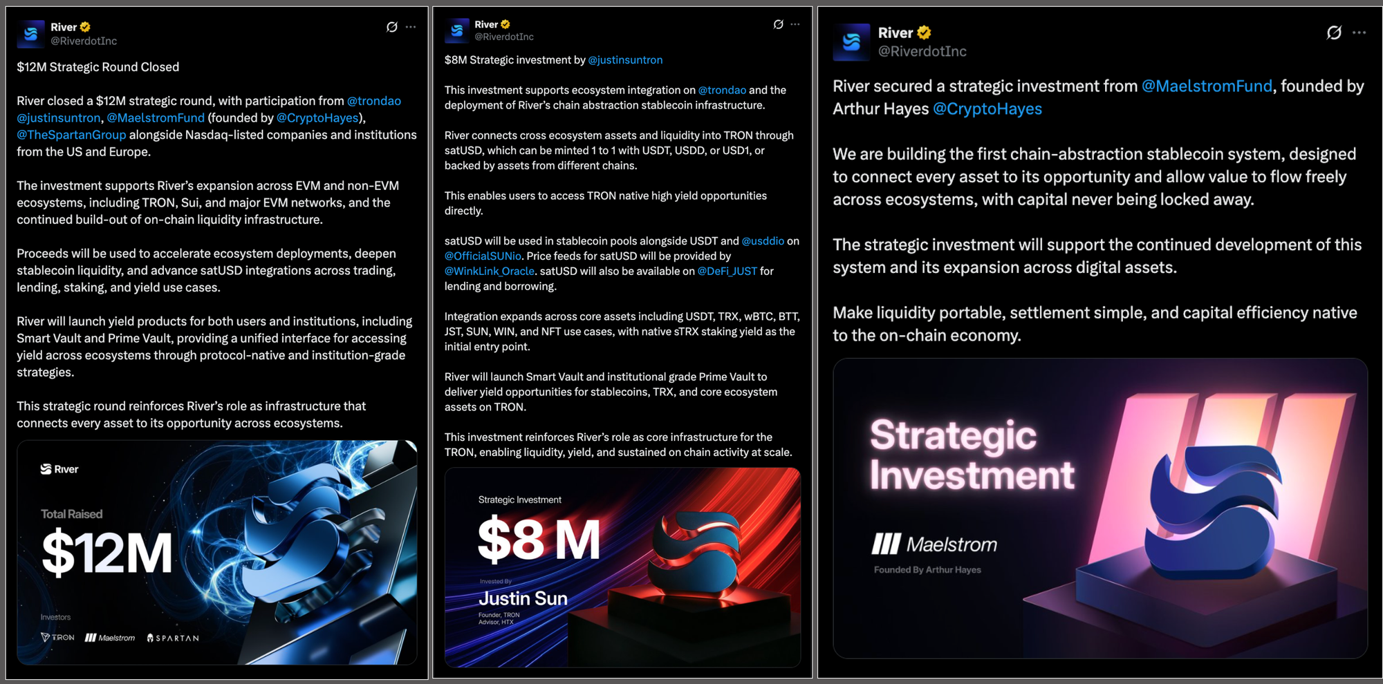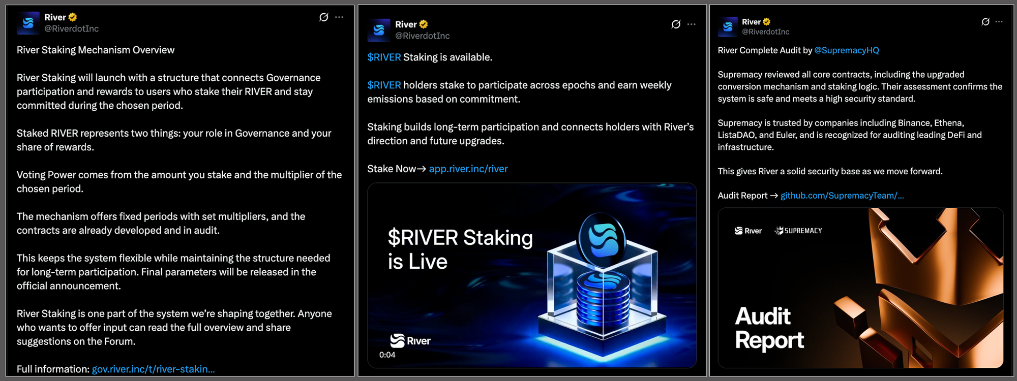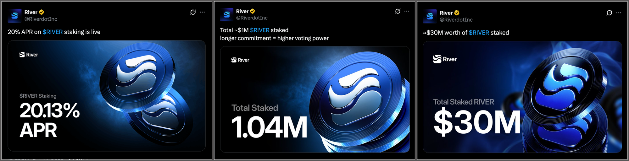 $12M strategic round closed in Jan. RIVER Stake size grew from zero to roughly $30M worth of $RIVER, with holders joining governance the moment they committed.