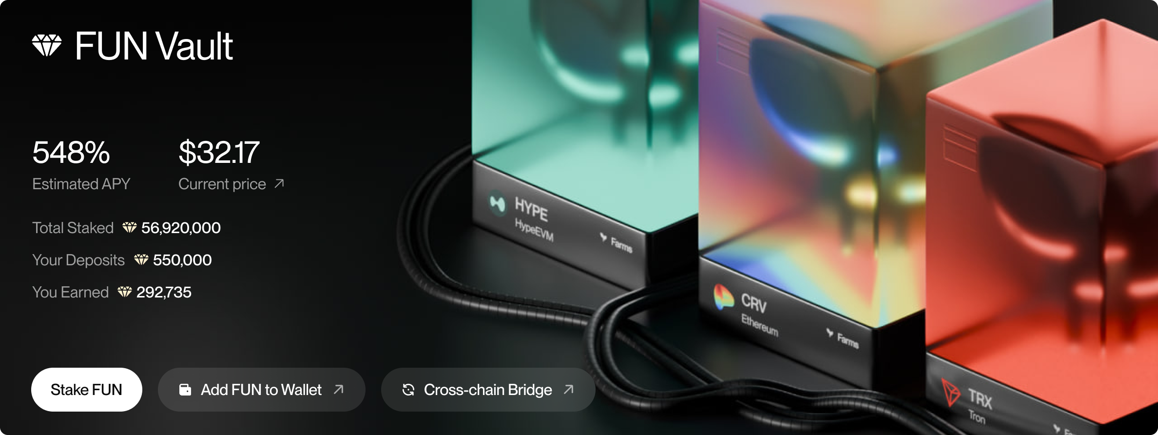 - Alternatively, users can instantly convert their claimed $FUN into a staking position within the dedicated FUN Vault.