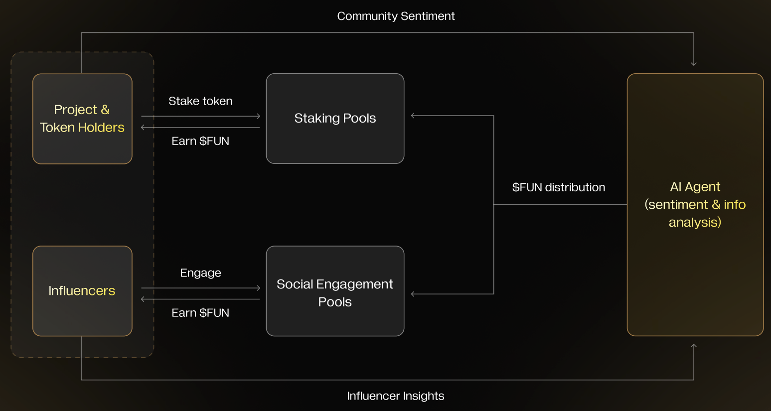 By staking and social engagement with the fully on-chain point $FUN, it enhances token utility, drives organic community interactions, and transforms influencer insights into measurable ecosystem value—creating a dynamic cycle of sustained protocol expansion.