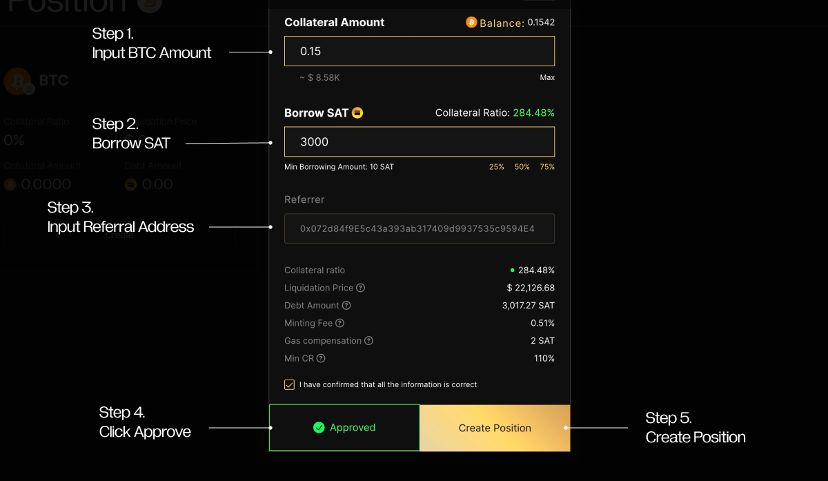 - Deposit BTC and Mint SAT