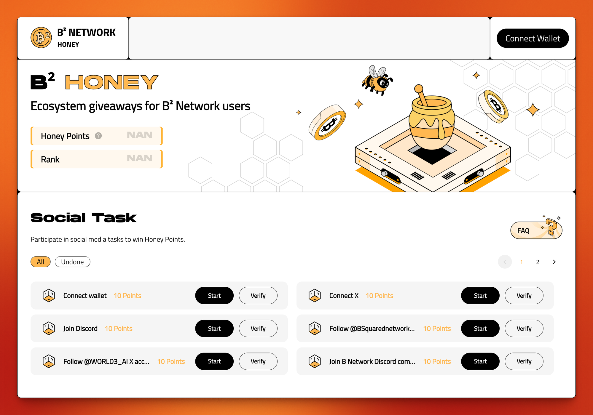 B² Honey is the reward token of the B² Network. Earned through staking and participation, it serves as both an asset and a gateway to governance rights and exclusive opportunities within the ecosystem. Access B² Honey
