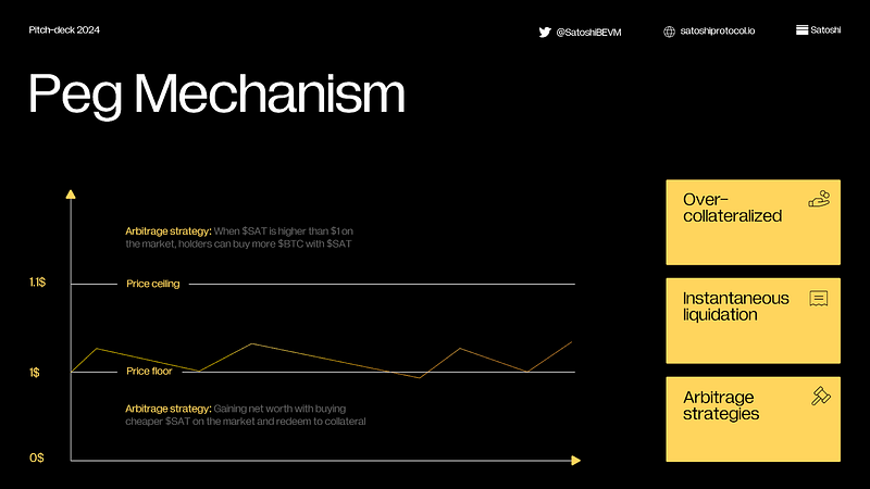The Satoshi Protocol thrives on its stable $1 peg for SAT, achieved through a robust three-pillar system :