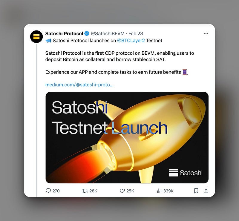 We appreciate community for your participation during the testnet phase. As the first CDP project built on the BEVM ecosystem, Satoshi Protocol will now shift its focus towards preparing for the mainnet launch.
