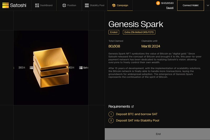 - March 6th: Testnet Campaign Launched. Genesis Spark NFT and Satoshi Pioneer OAT released.