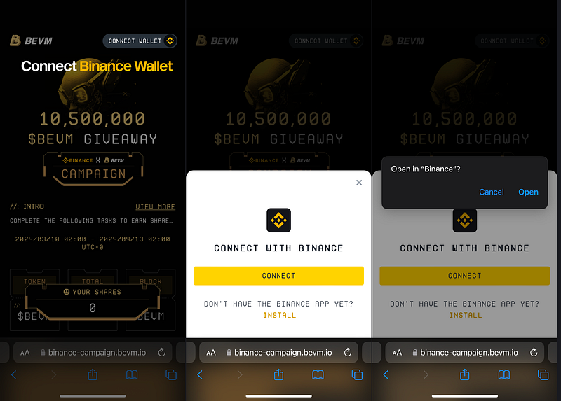 STEP 1: Campaign → Connect with Binance Wallet