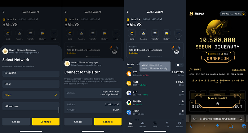 - Bridge BTC to the BEVM using Binance Web3 Wallet.