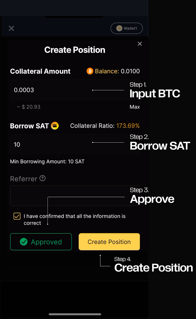 STEP 3 : Go to Satoshi Protocol, Create Position